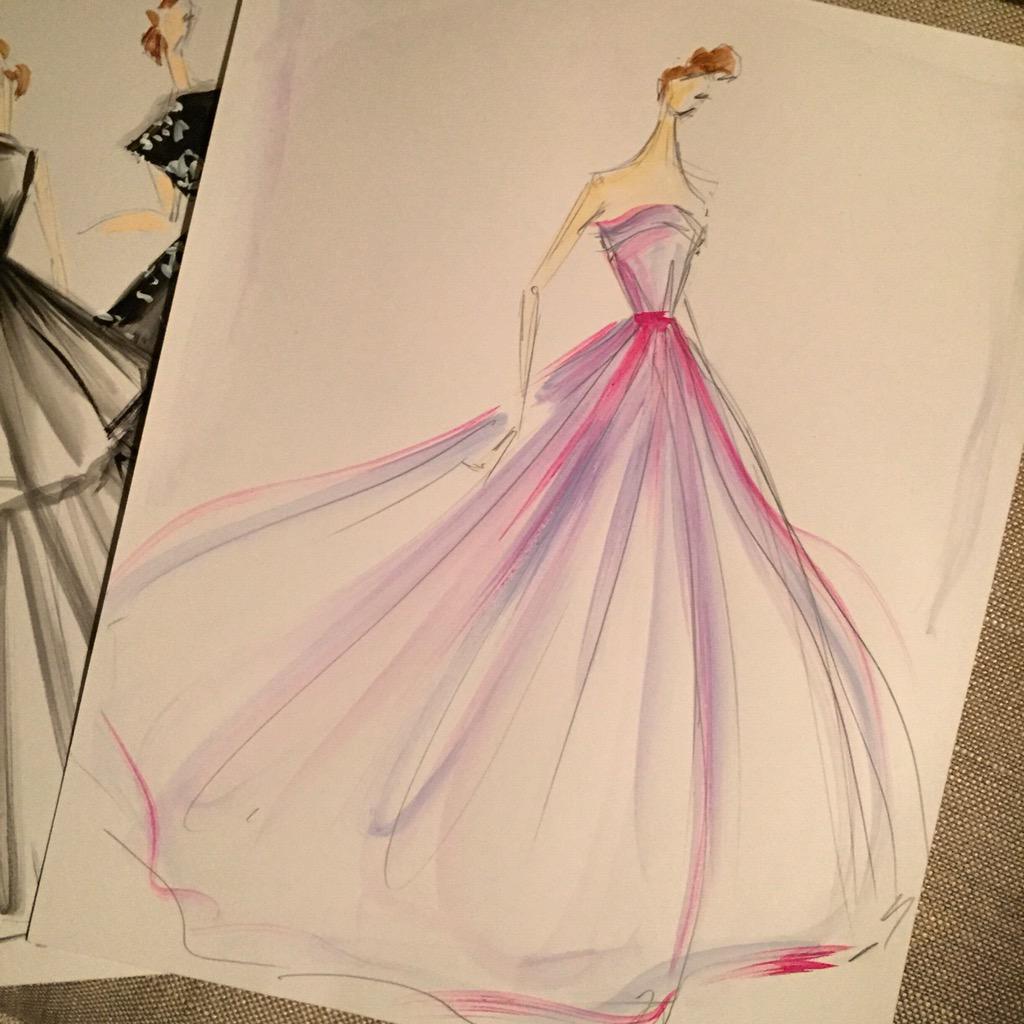 Sketch of the day: tulle watercolor gown. Sketch prints and originals available at our online
