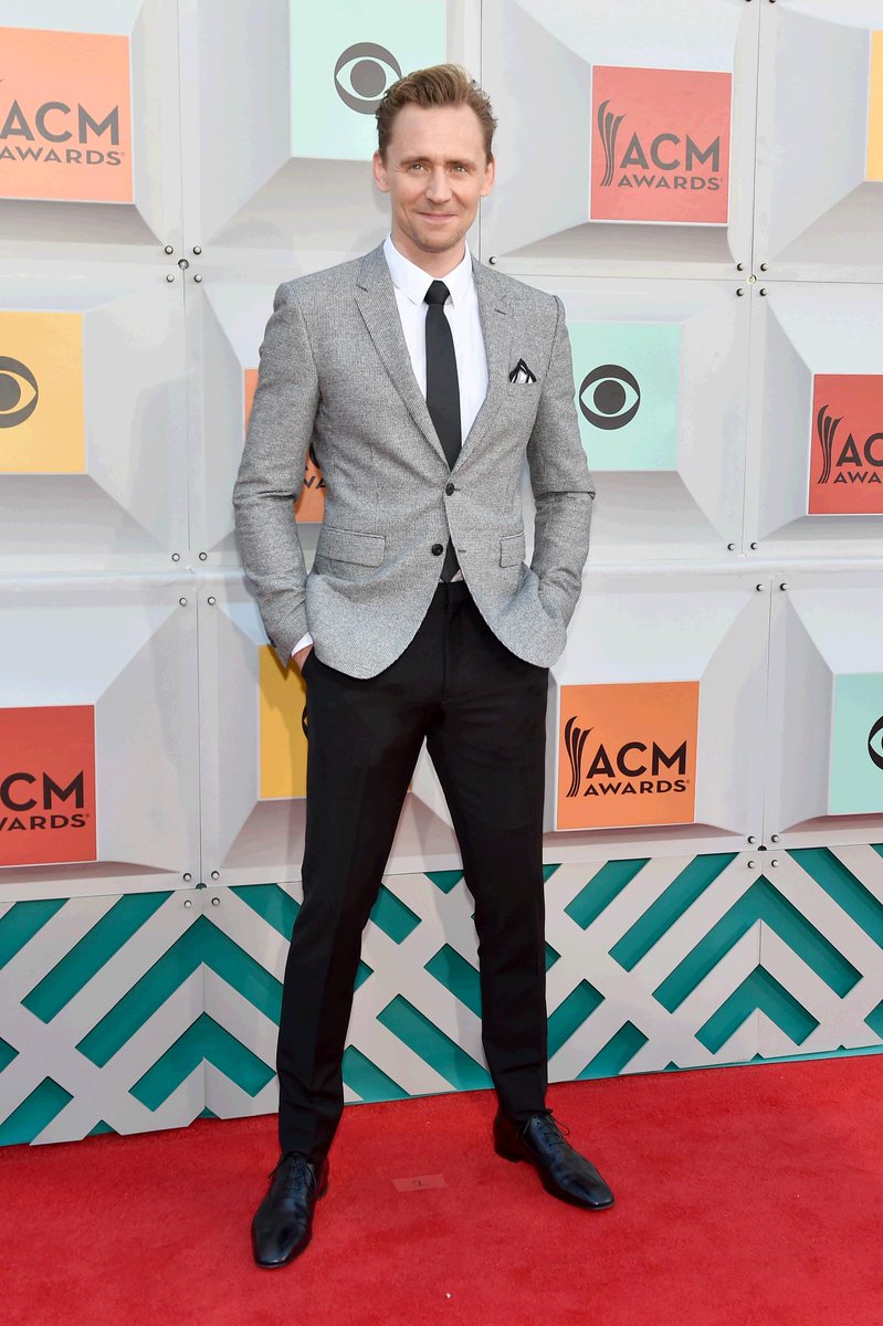 Burberry tweeted: British actor @TWHiddleston wearing @Burberry tailoring at the 51st annual #ACMs last night in Las Vegas
